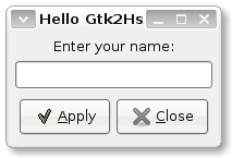 $ ghc --make HelloGtk2Hs.hs -o hellogtk2hs $ ./hellogtk2hs